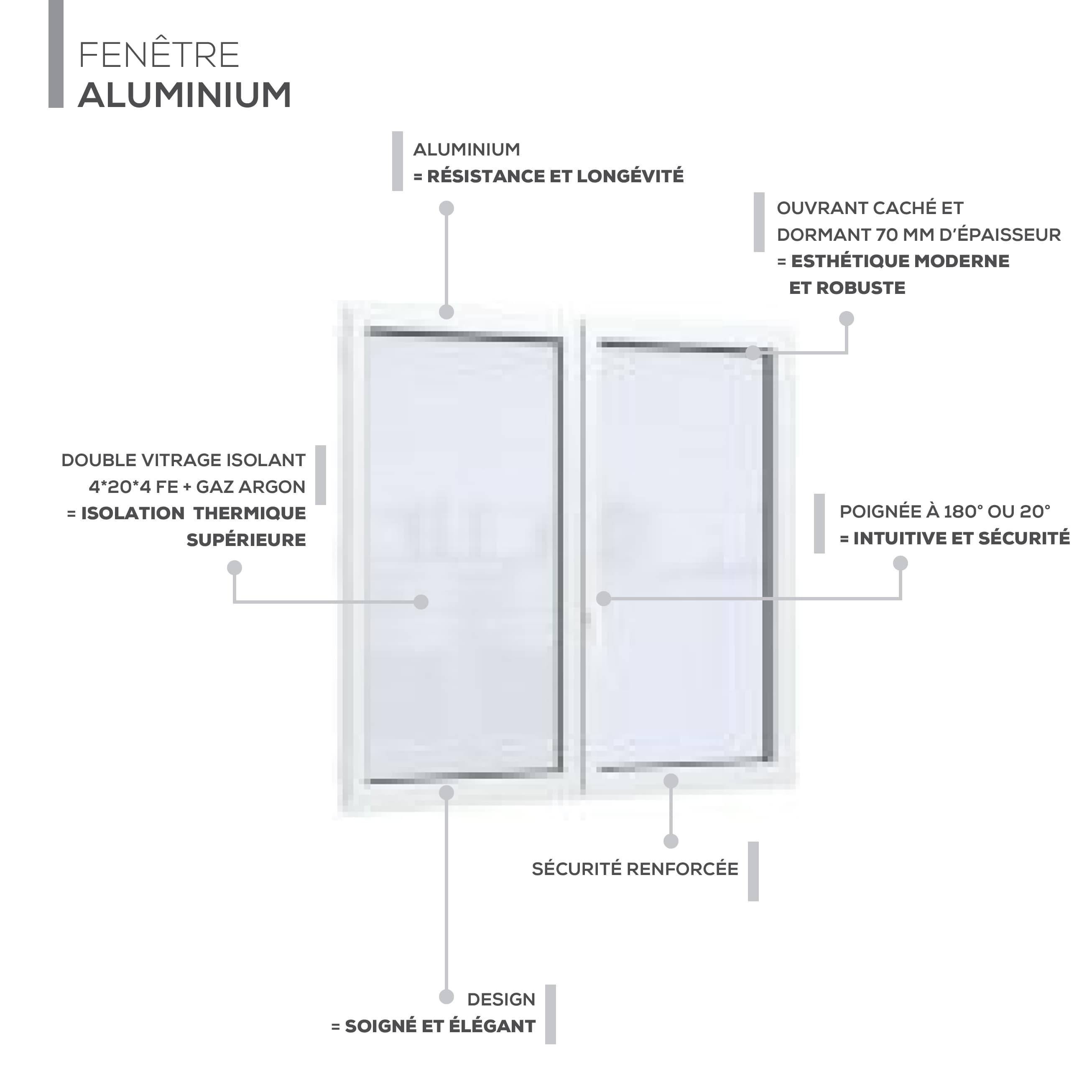 - Matériau : Menuiserie en aluminium thermolaqué.