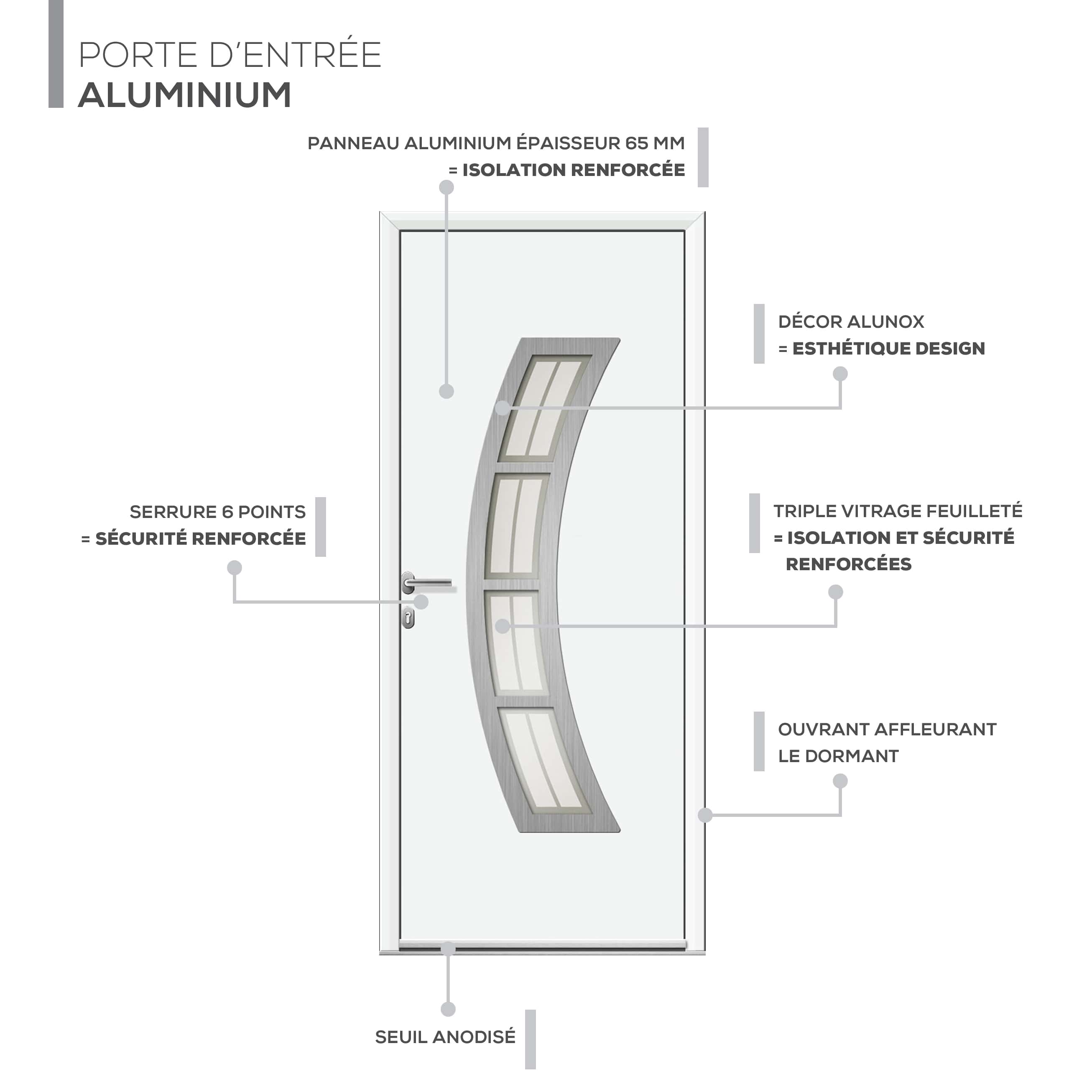 Idéale pour les projets de construction neuve ou de rénovation, cette porte d’entrée en aluminium combine esthétisme et performances thermiques pour une entrée élégante et sécurisée.
