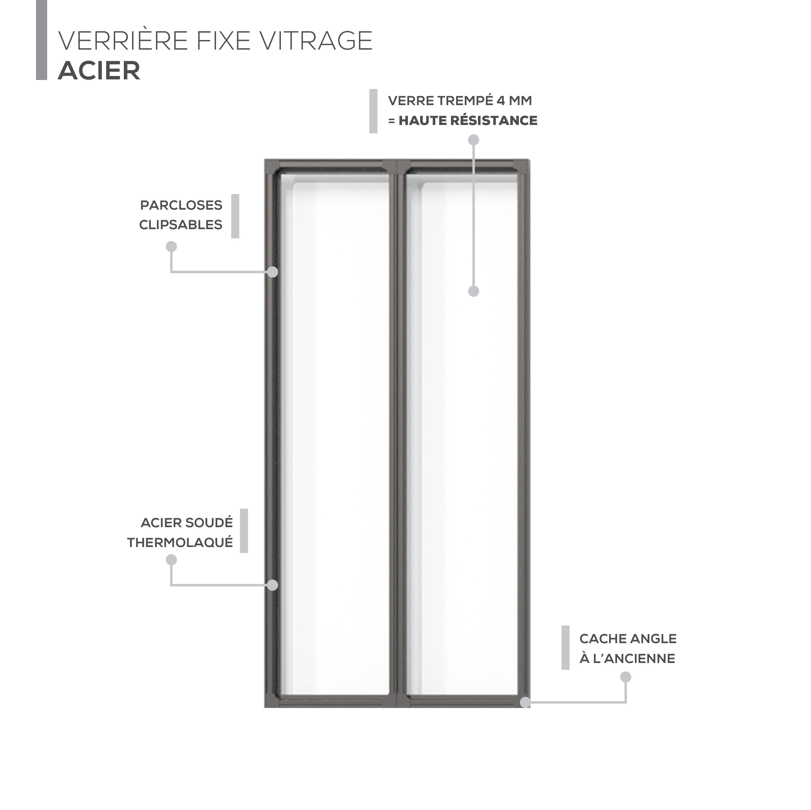 Le montant central apporte du rythme et une touche graphique discrète, idéale pour créer une séparation élégante entre cuisine et séjour, délimiter une entrée ou isoler un bureau tout en gardant la lumière. La verrière organise l’espace avec finesse, en préservant une vraie sensation d’ouverture.