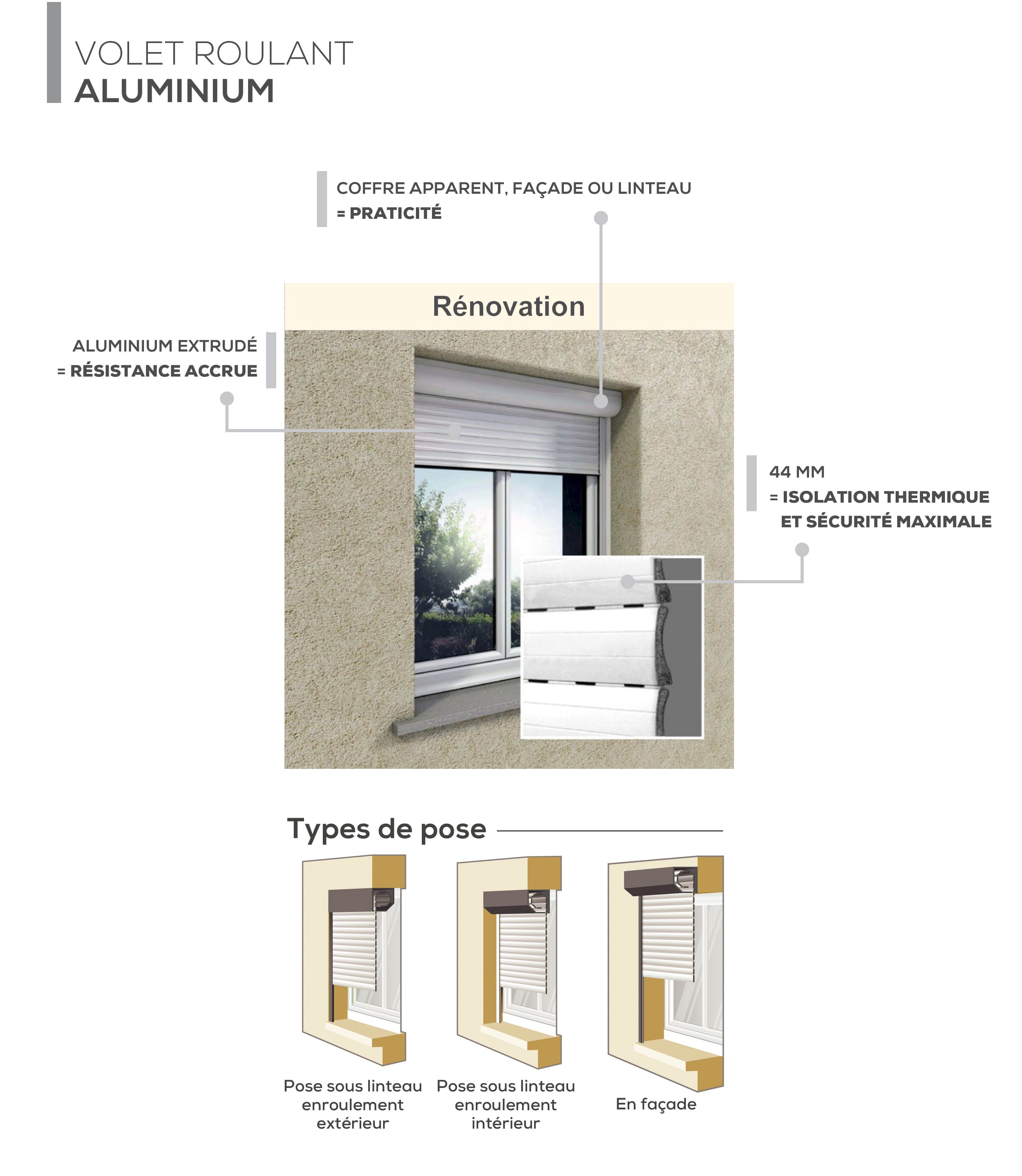 Volet Roulant Rénovation - Aluminium extrudé retardataire d'effraction Ep. 44 mm